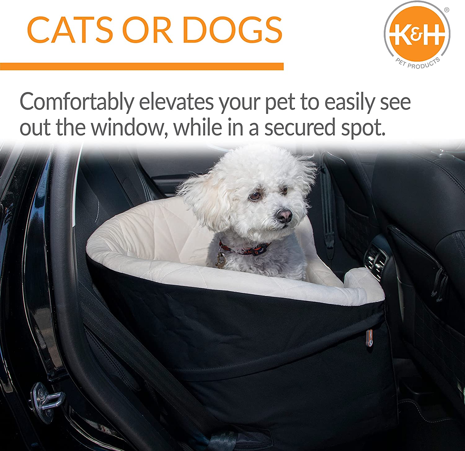 • SAFETY FIRST: Compatible with any car seat belt to securely buckle in place with the seat belt hidden under the removable booster cushion; plus it includes two adjustable security tethers to attached to dog harness