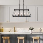 • Improve the Taste of Your Home: The stunning chandelier is made of metal in a black and gold painted finish, which blends well with modern, farmhouse and industrial styles. Adopted 5 gold candlesticks in the center of the geometric framework, this island light fixture ensures abundant light while creating a warm atmosphere and reviving a look in your dining room and kitchen island.