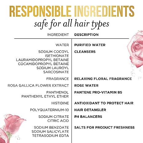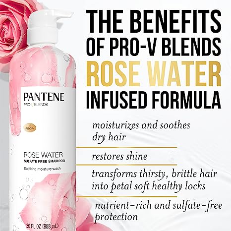 Home Beauty & Personal Care Pantene Sulfate Free Rose Water Shampoo, Soothes, Replenishes Hydration