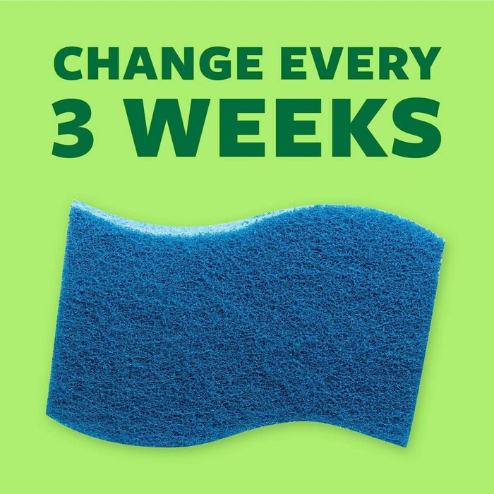 • EASY CLEAN: Clean scrub sponges in the dishwasher top rack 20x or more; replace your scrub sponges every 3 weeks for the most effective cleaning performance