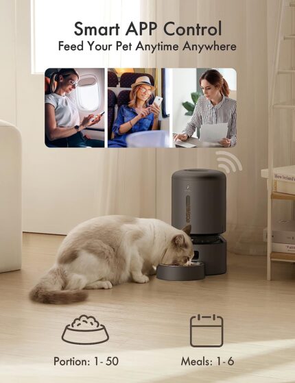 • Convenient APP Control: WiFi automatic cat feeder can connect to 5GHz and 2.4GHz WiFi network. Program and monitor your pet’s meals anywhere anytime through the PETLIBRO LITE App on your iOS or Android smartphone. You can set up to 10 meals per day with 1-50 portions per meal. You can check the feeding records to ensure your cat or dog has been fed on a set schedule by APP and also can be controlled from multiple family members’ smartphones.